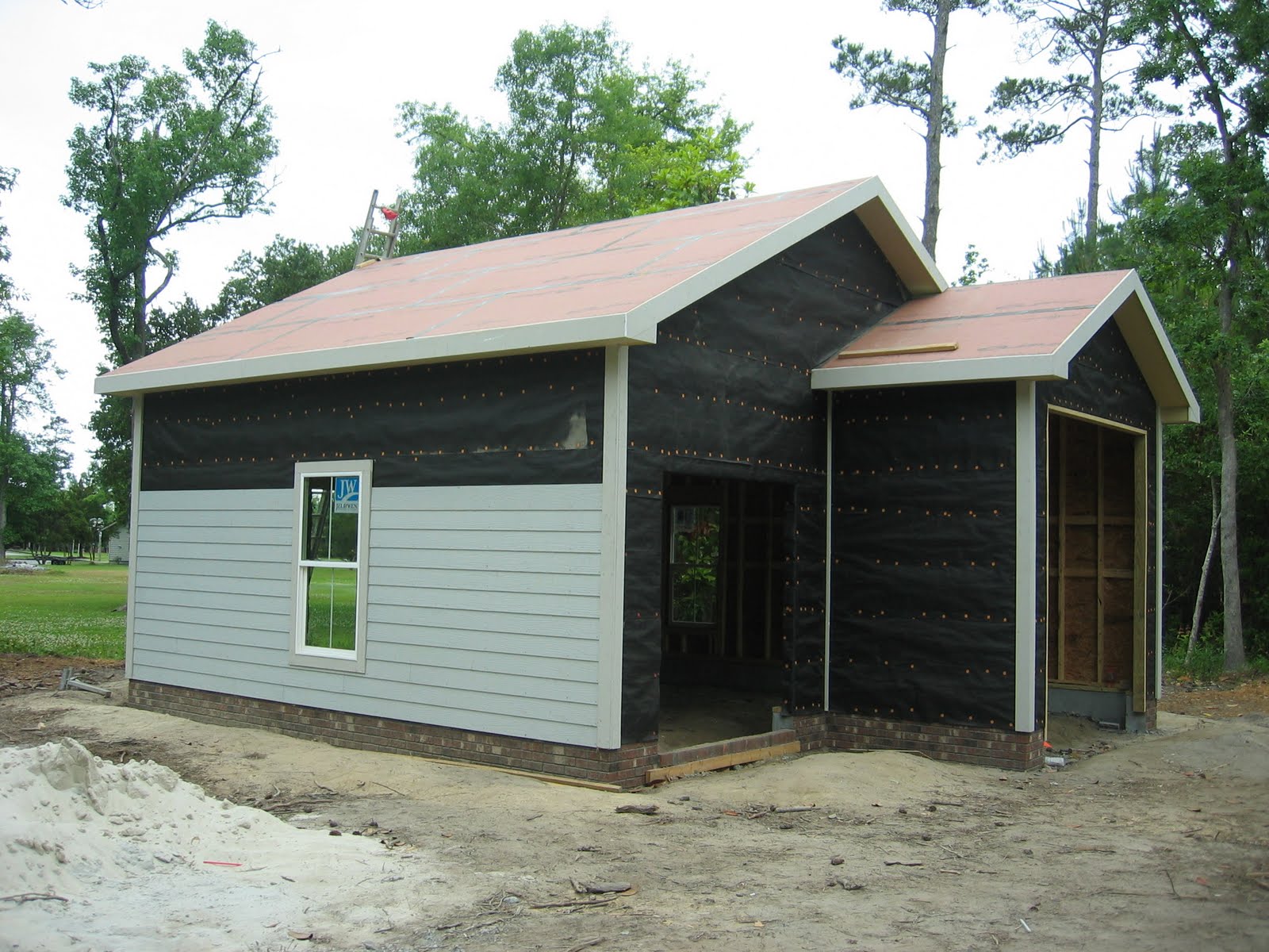 The fireplace will go between these two windows.
